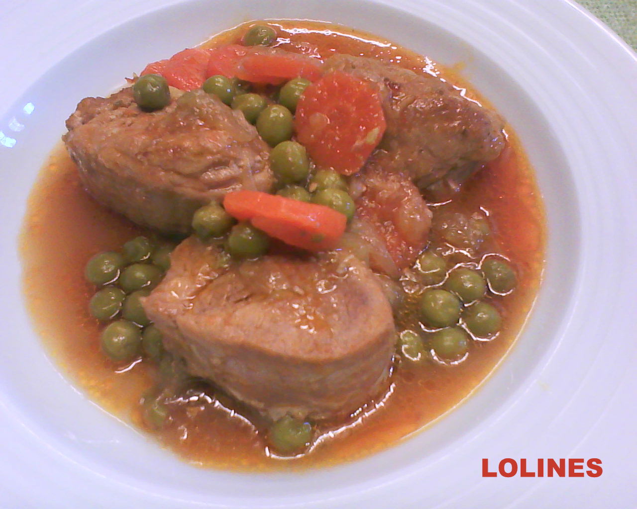 Hi afegim pastanaga tallada ben petita. Al cap d'una estona posem pèsols. Quan veiem que està cuit li afegim un all trinxat. Remenem i aboquem tomàquet triturat, julivert, sucre i sal.